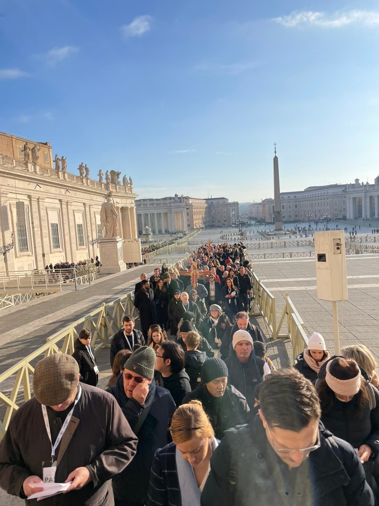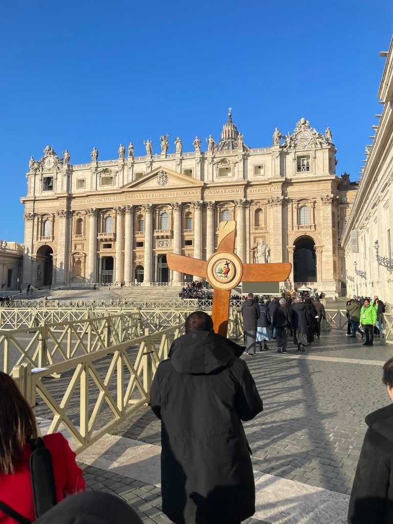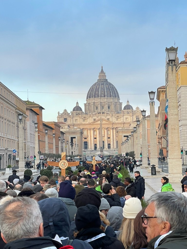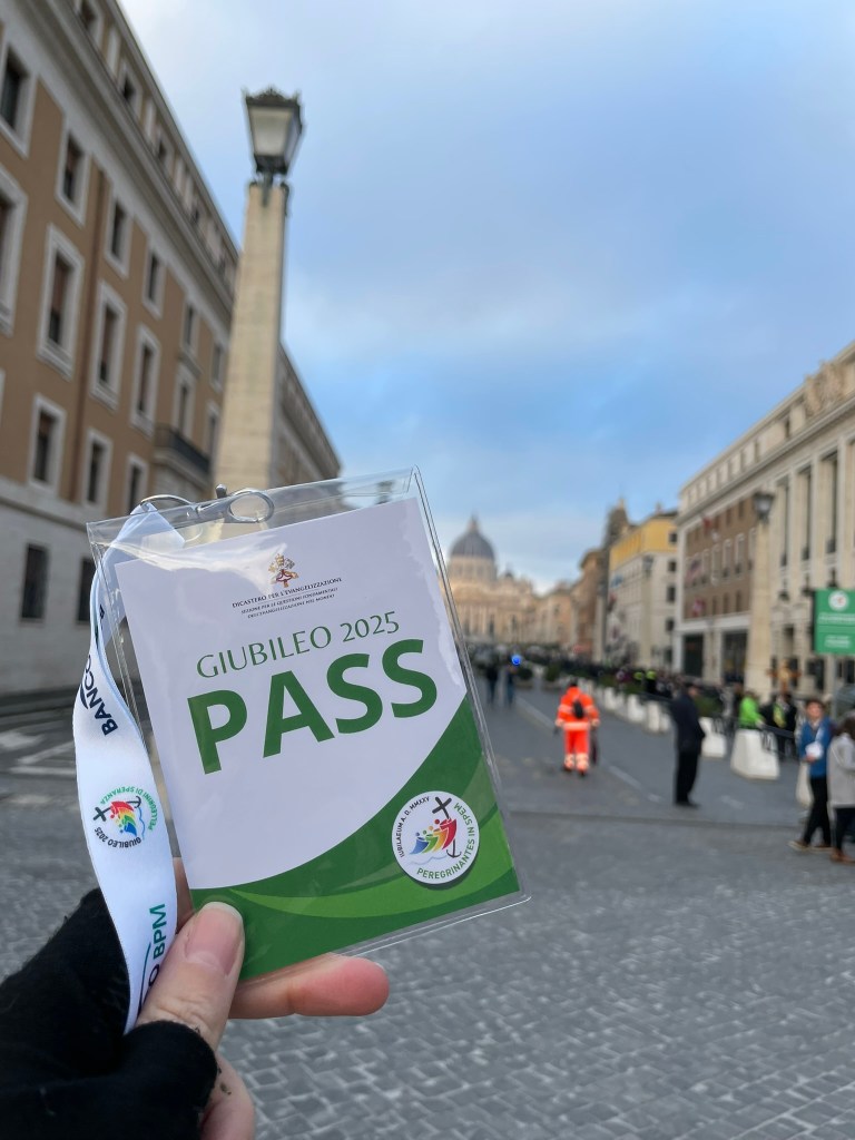 This year’s theme is “Pilgrims of Hope”, and I chose to attend during the events of the last weekend in January, “Jubilee of the World of Communications” intended for journalists, media professionals, IT experts, etc. To participate, you must register in advance on the website (https://www.iubilaeum2025.va/en.html). I did this four months ahead of time, and the last day of registration for this specific event was Nov. 24, 2024. You must register to get an official badge to wear that gives you access to the events.